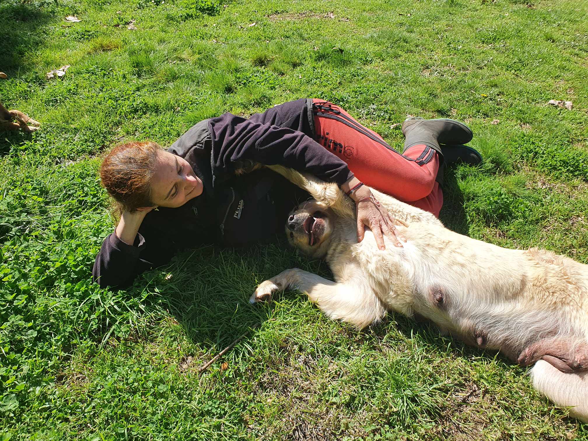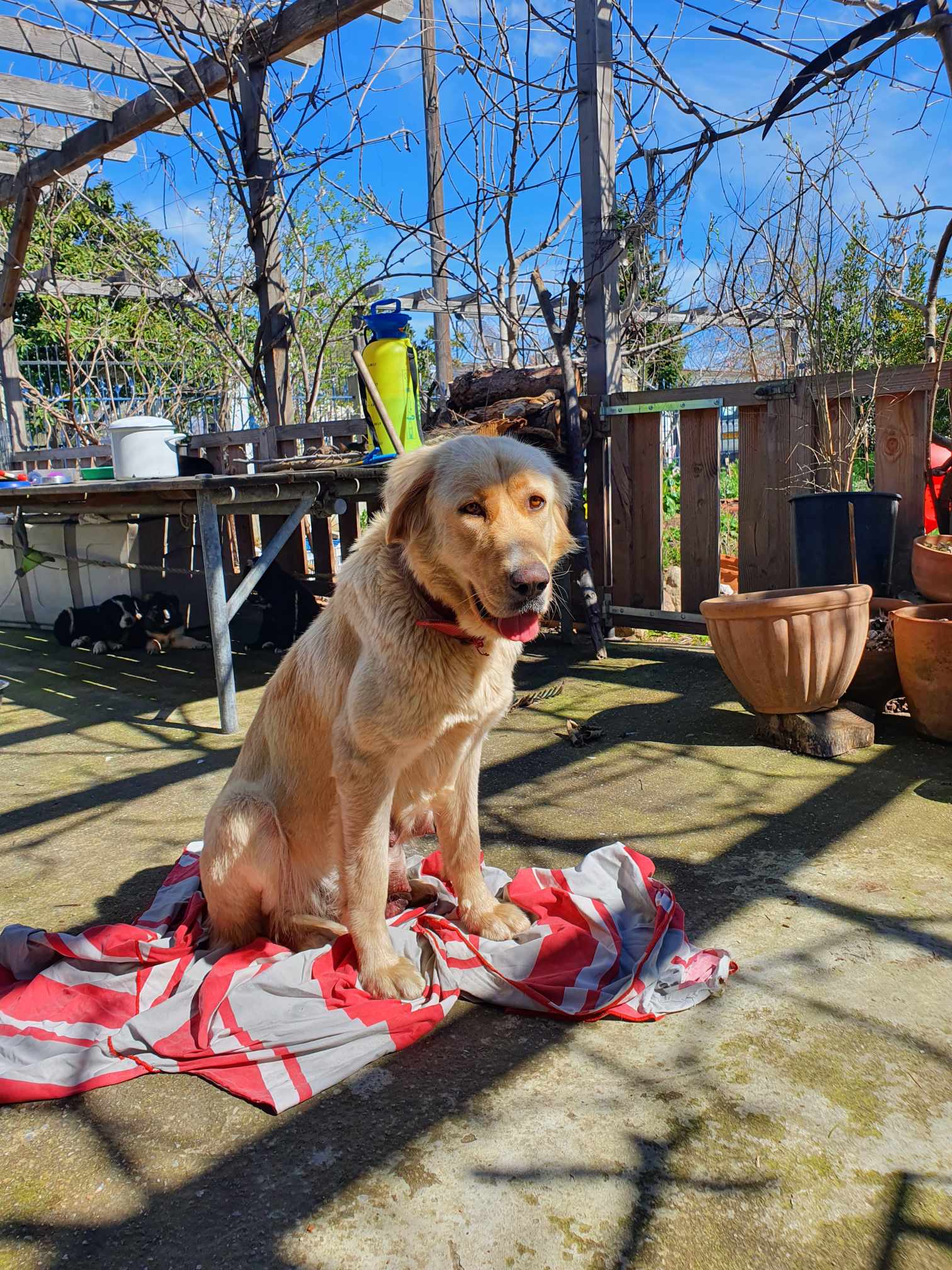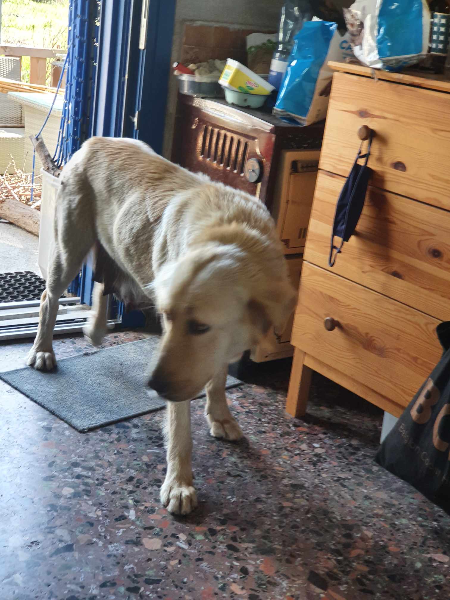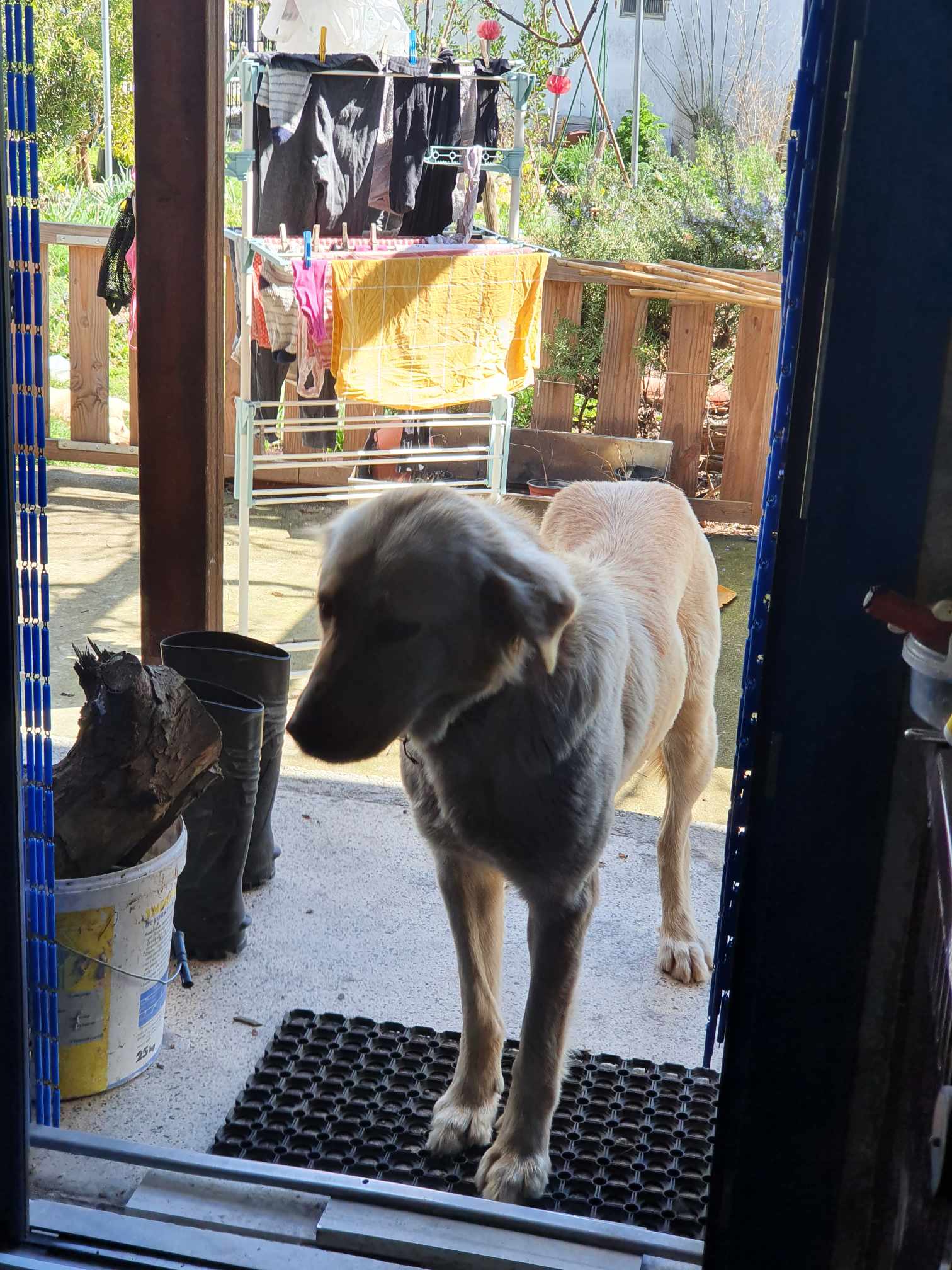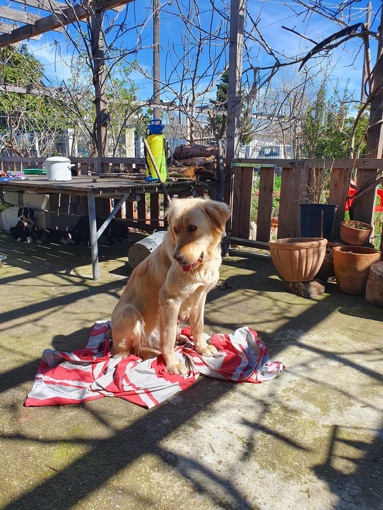 2 dagen later was zij weer ontsnapt en stond ze nu met haar 3 pups voor de poort.
