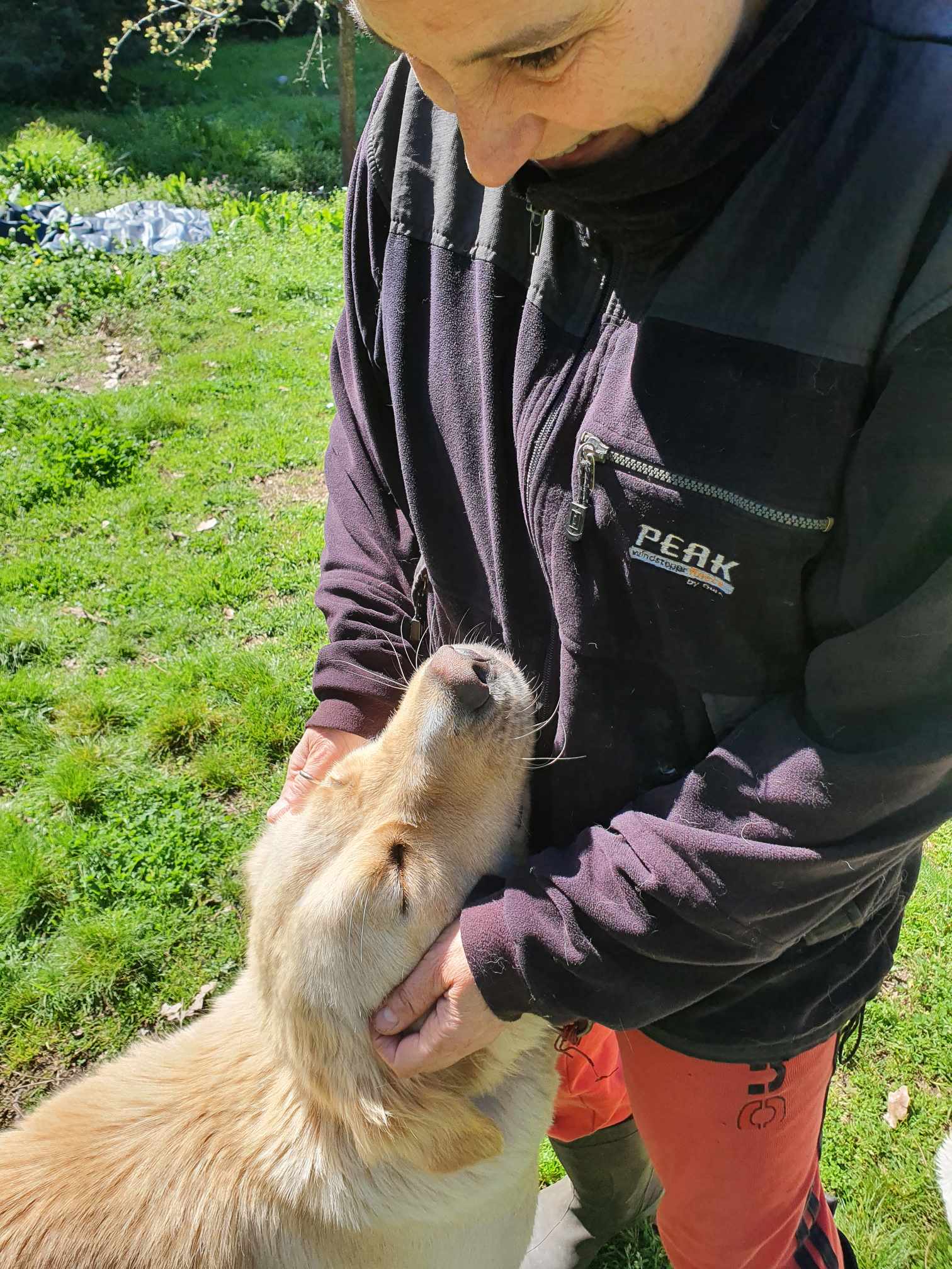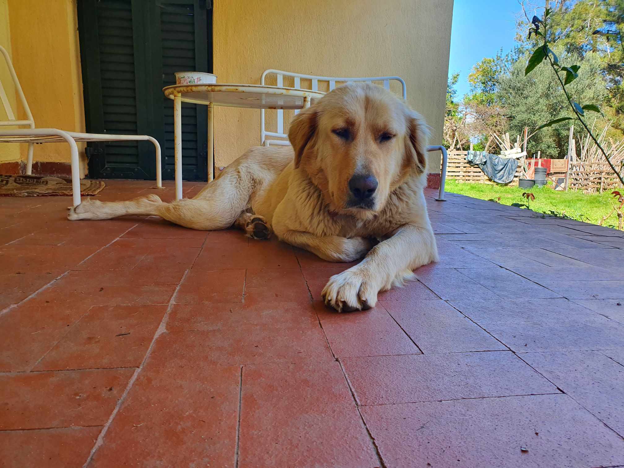 We volgde haar en ontdekte de plek waar haar andere pups verblijven. Even later ontdekte we dat zij aan de ketting was gelegd.